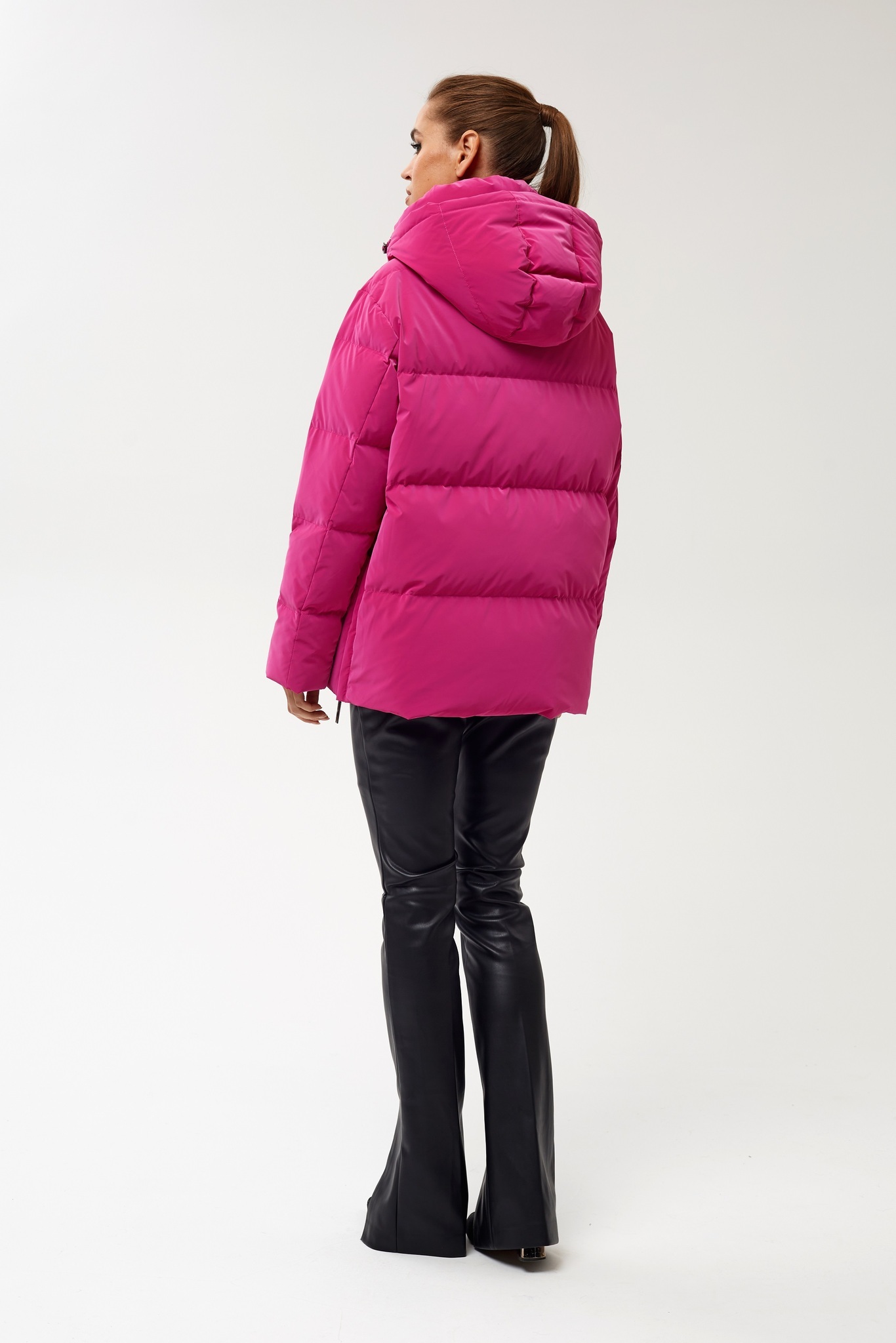 Пуховик зимний женский. Средней длинны с капюшоном. Верхнее покрытие - ткань ARMANI