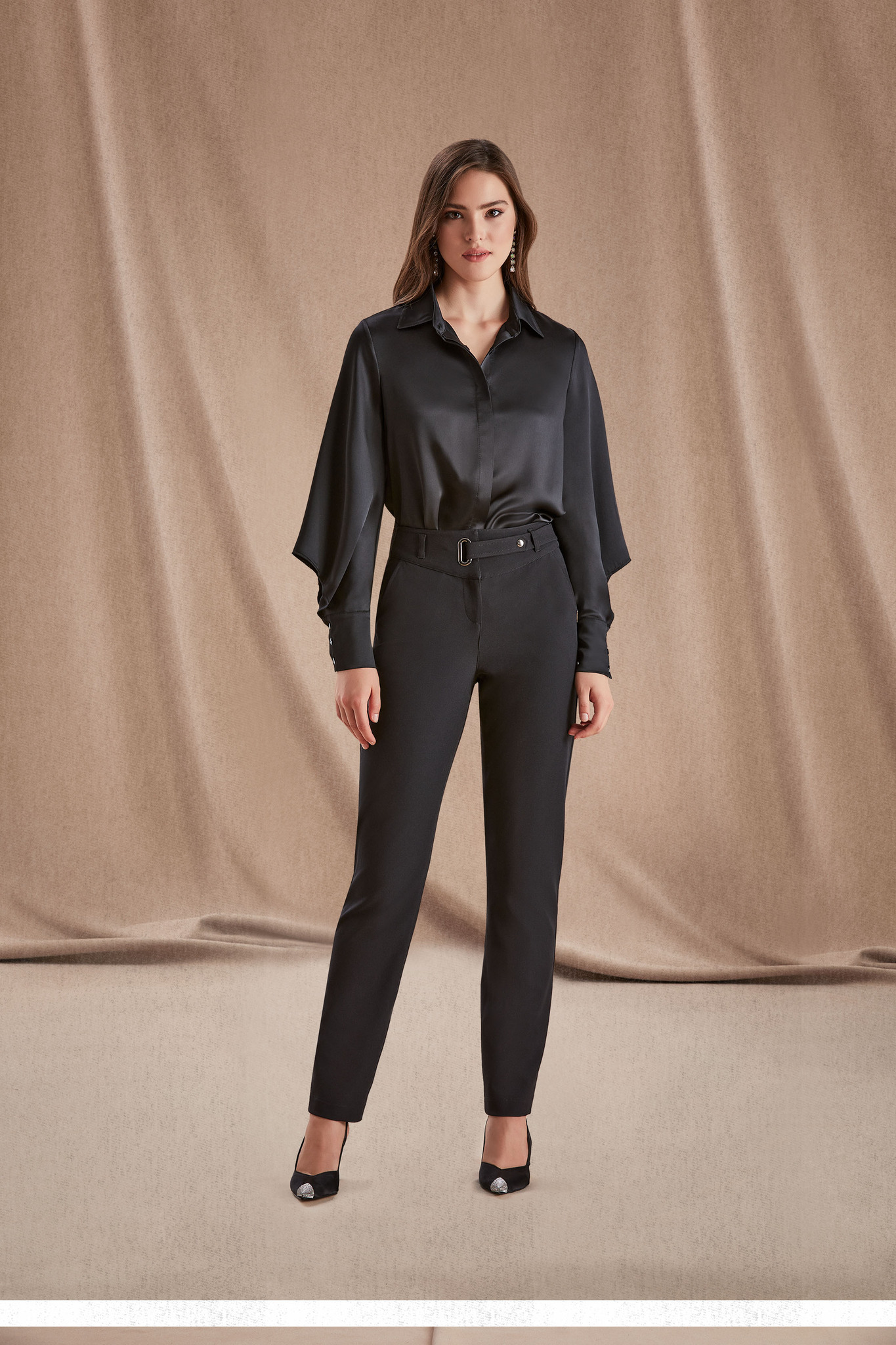 Брюки женские прямого кроя на классической, слегка завышенной посадке на мягкой резинке