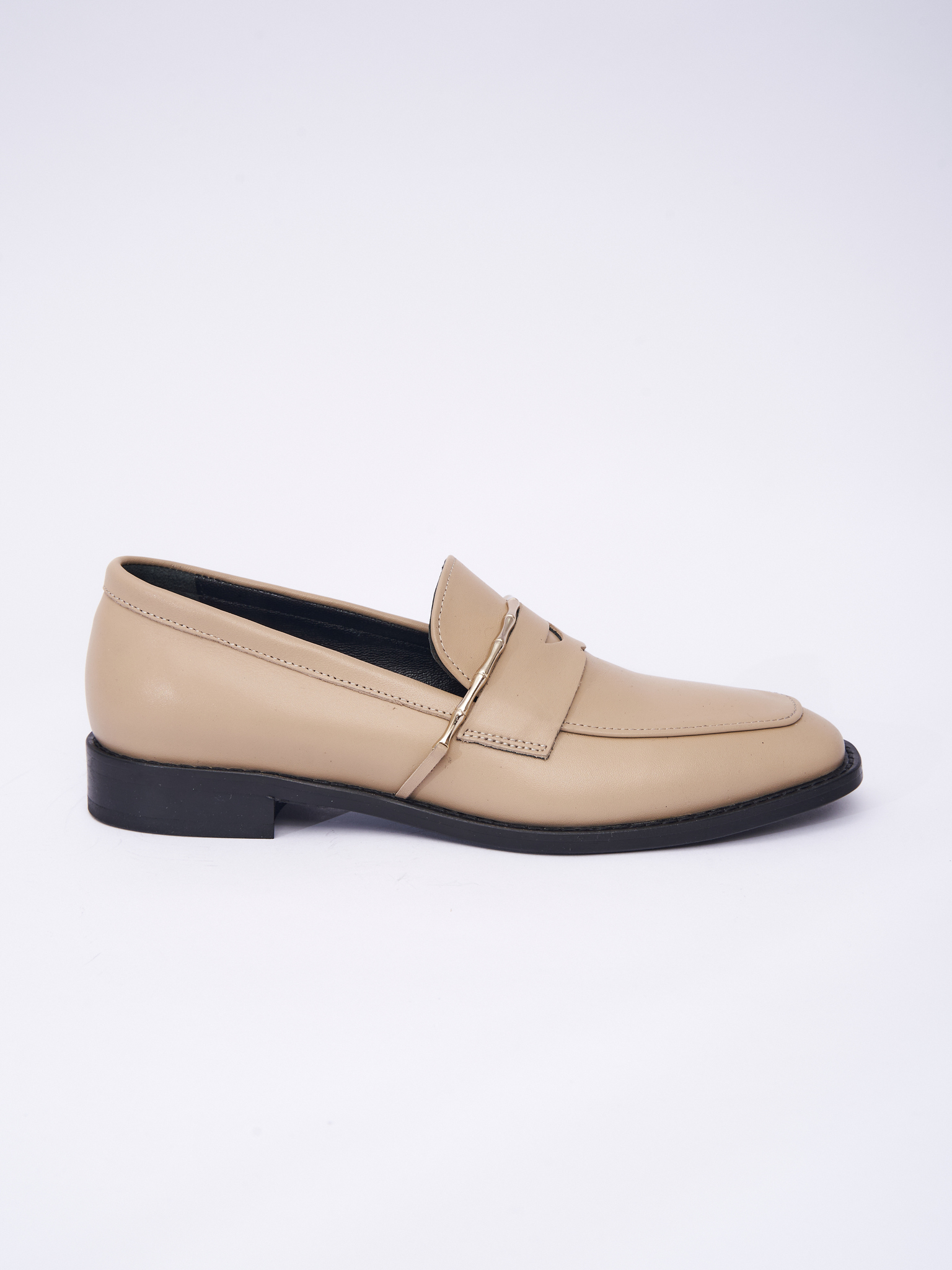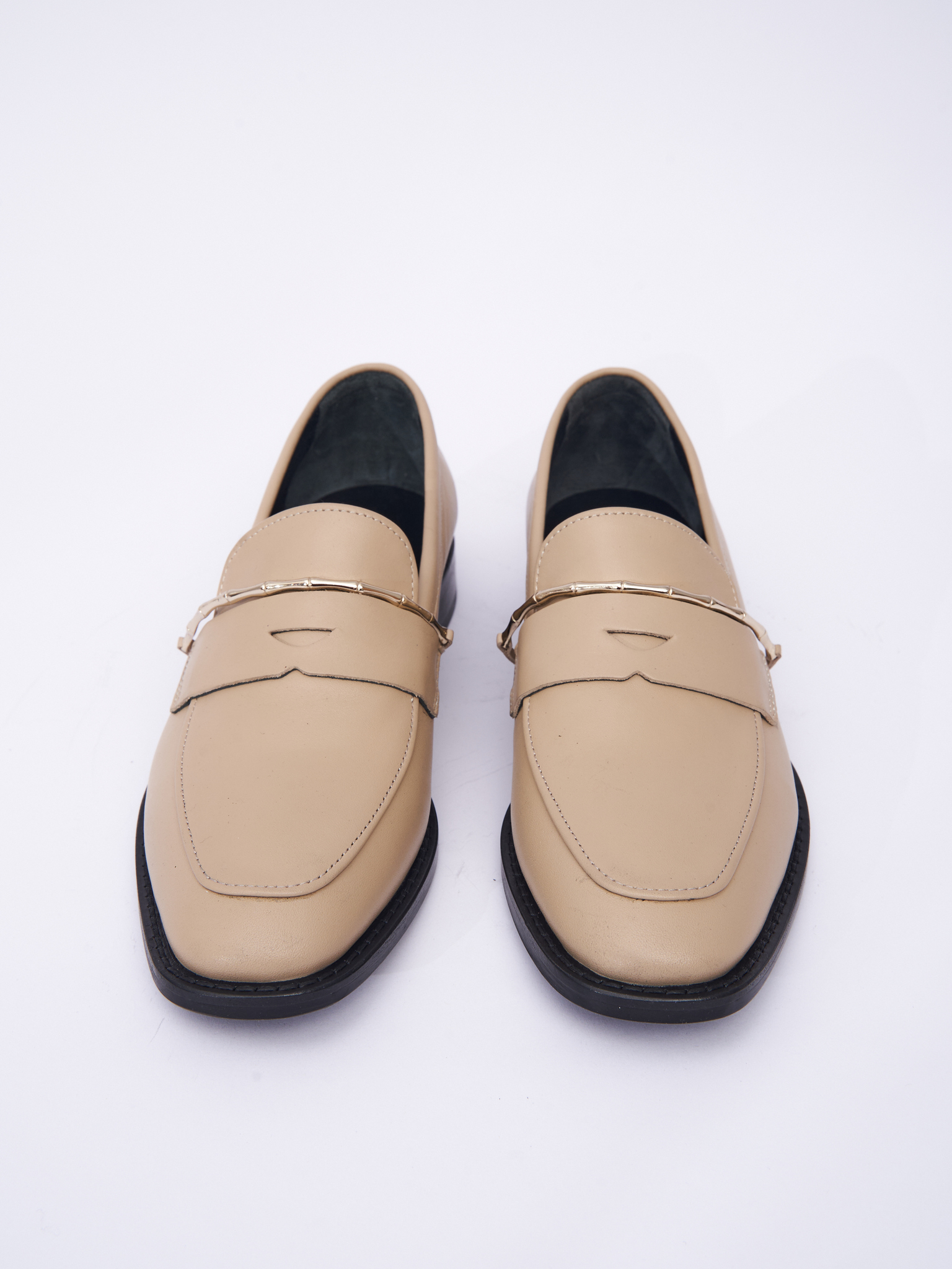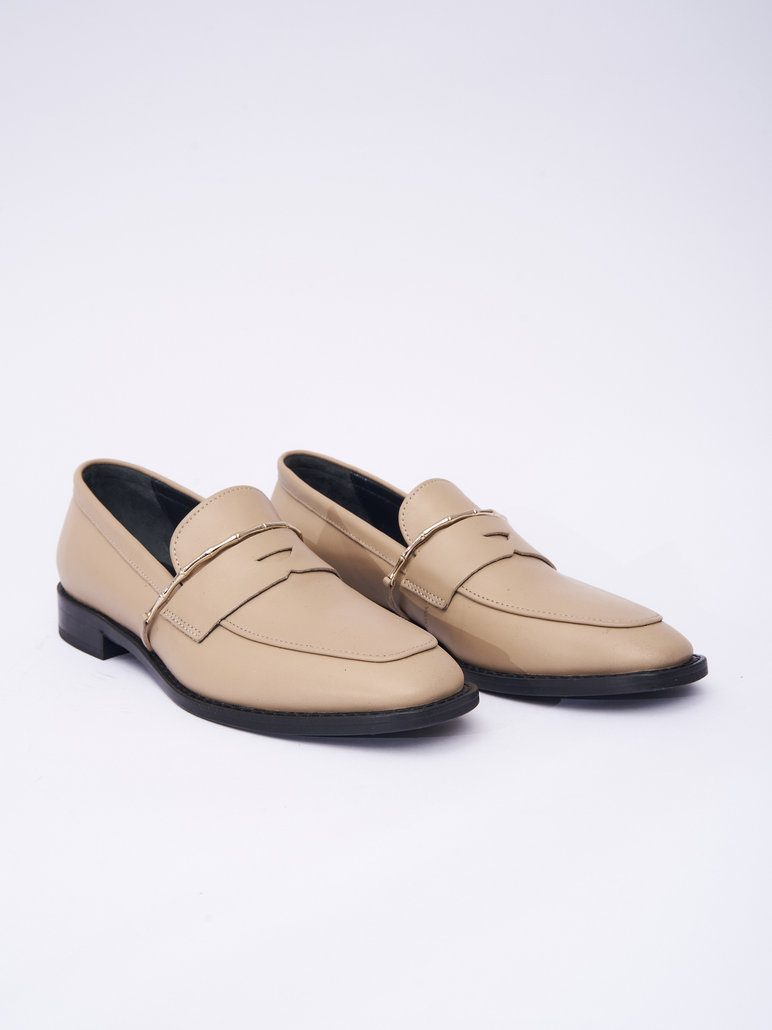 Лоферы из натуральной кожи. Декорированы металлической вставкой золотого цвета