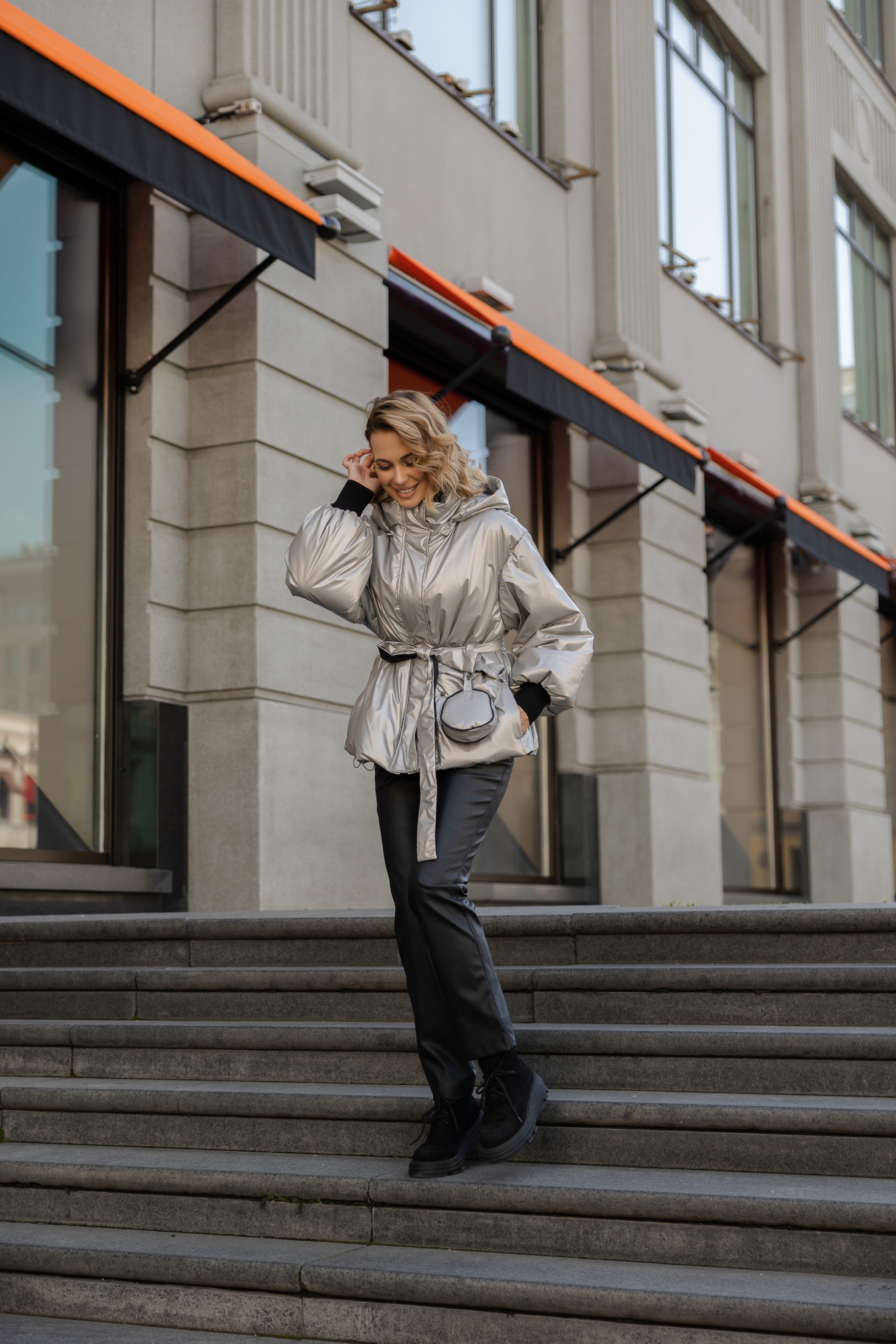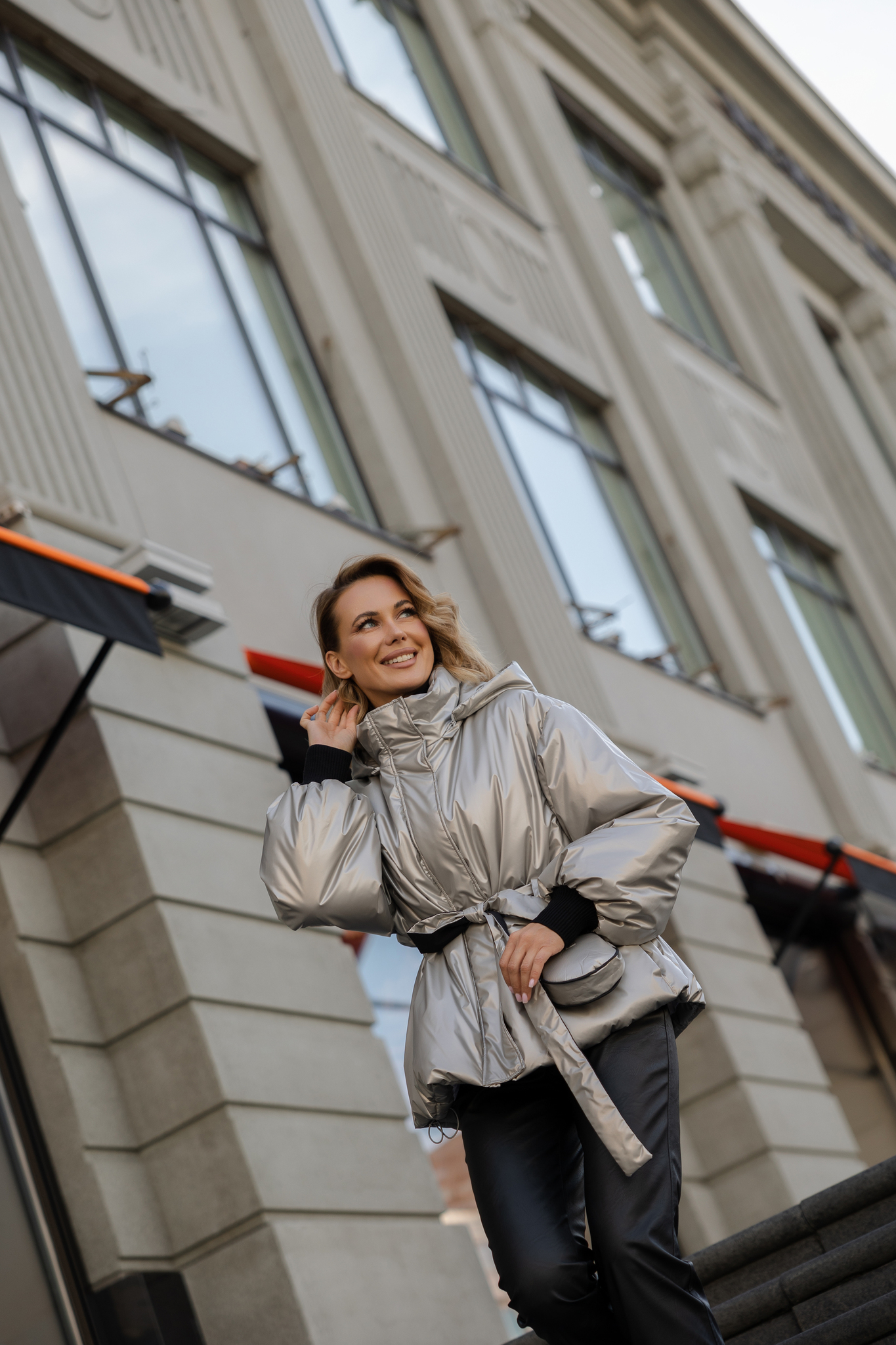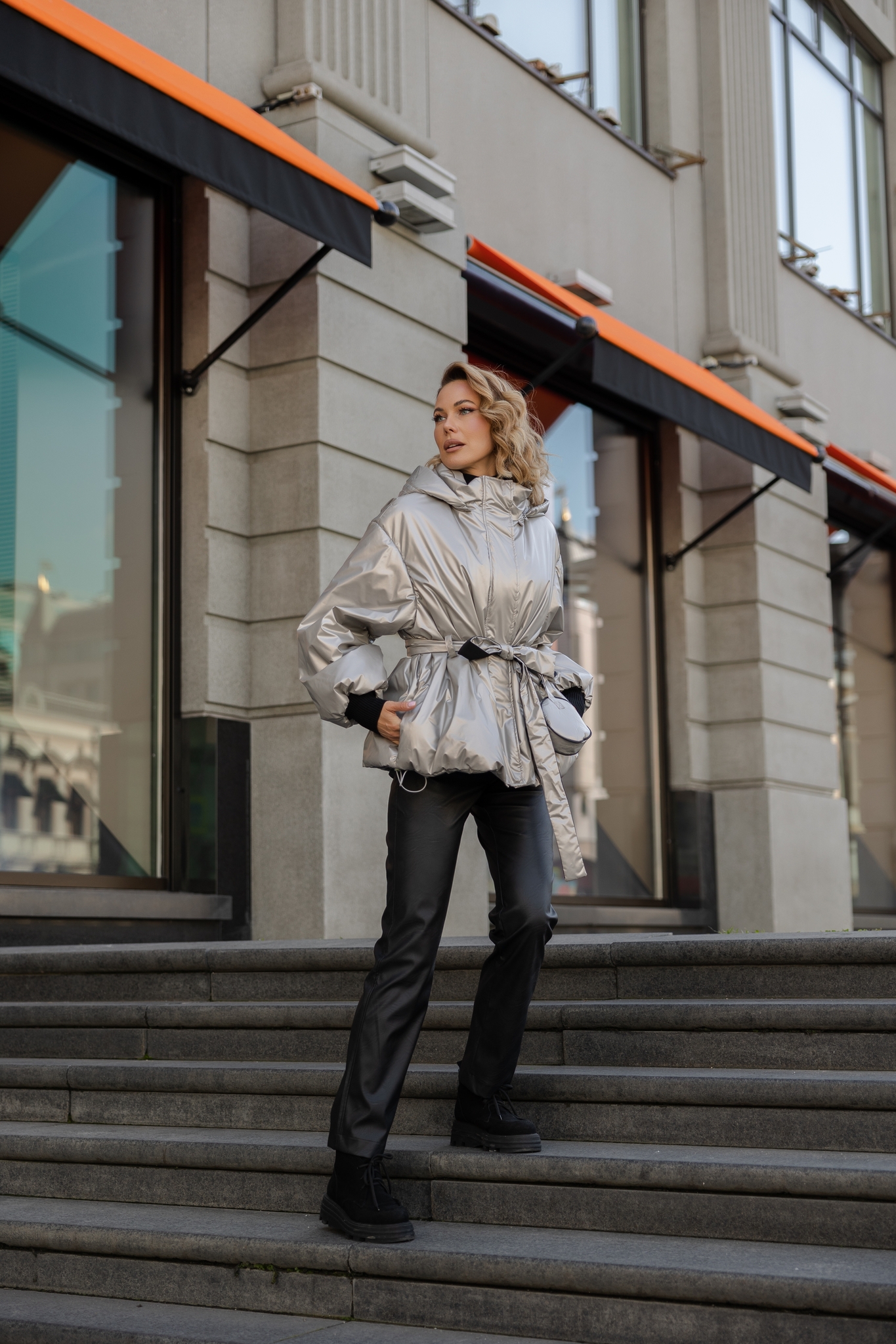 Куртка металлик под пояс