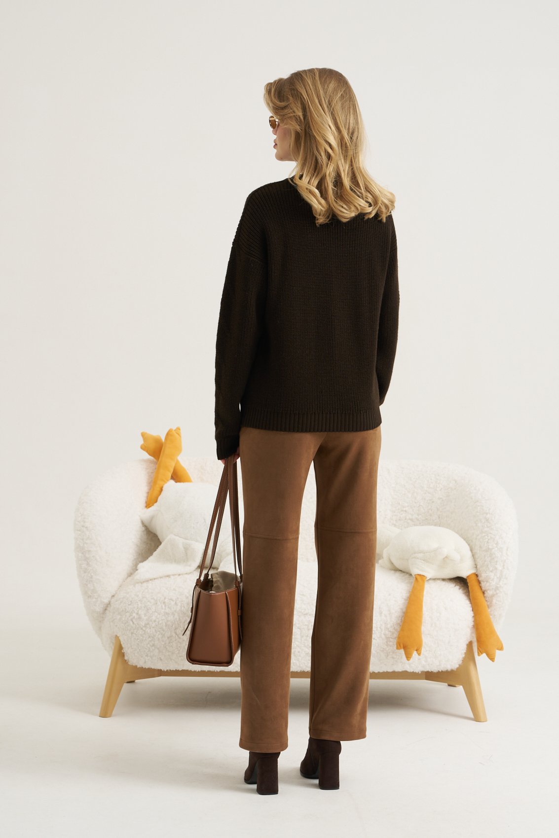 Джемпер женский свободного кроя со съемной брошью и контрастными манжетами