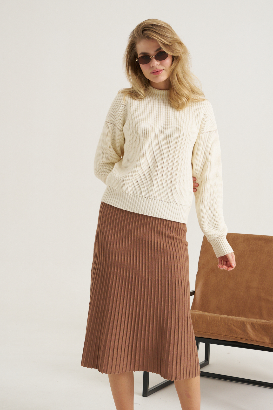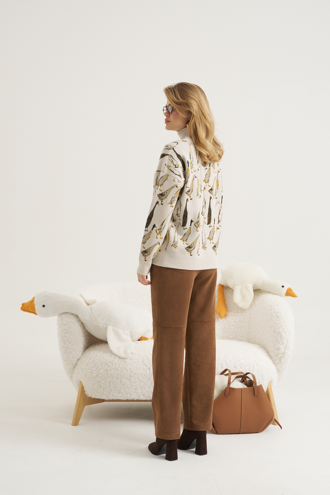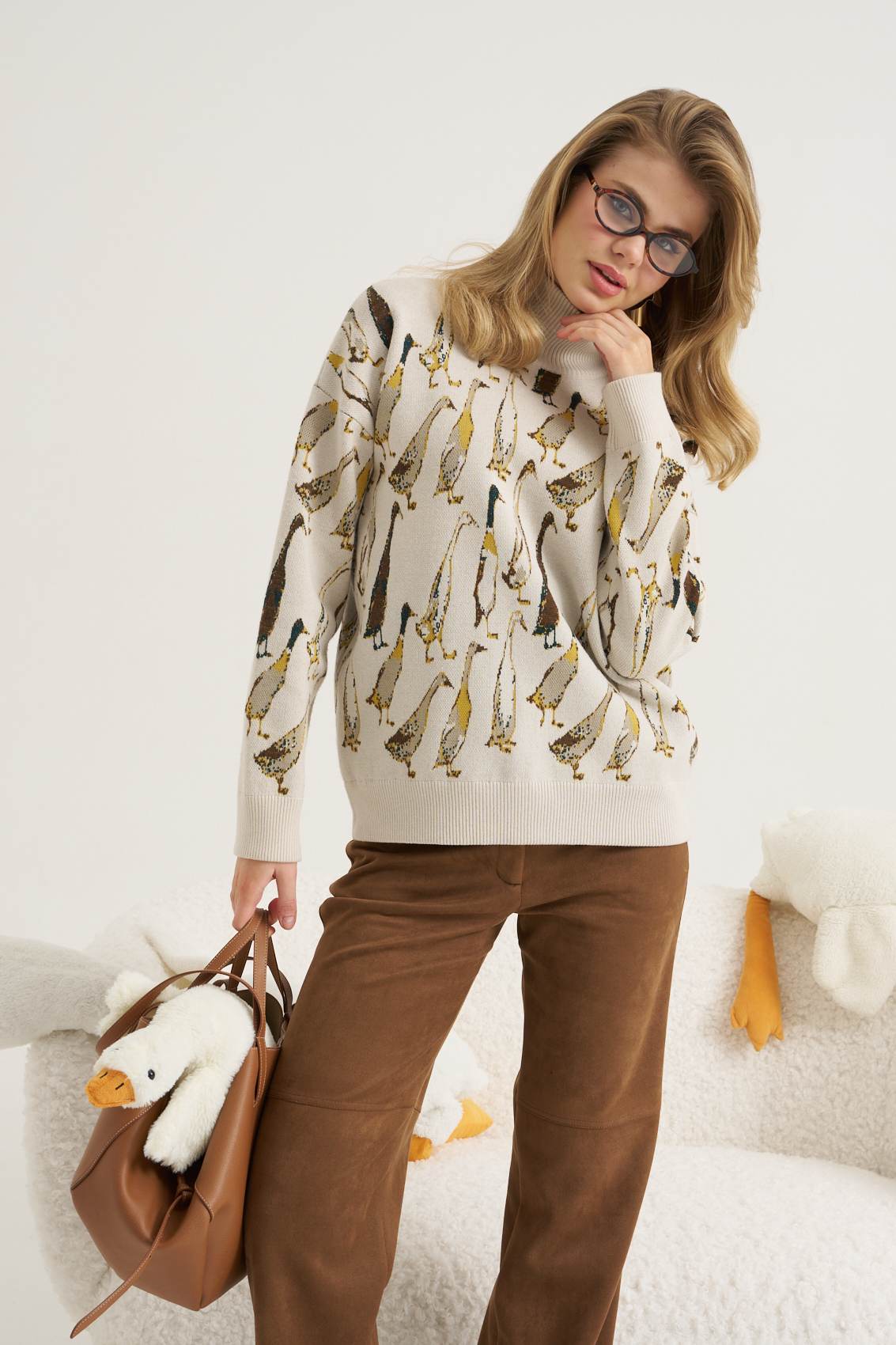 Свитер женский из шерсти мериноса свободного кроя под горло