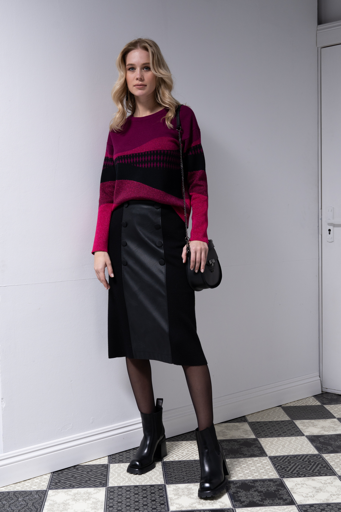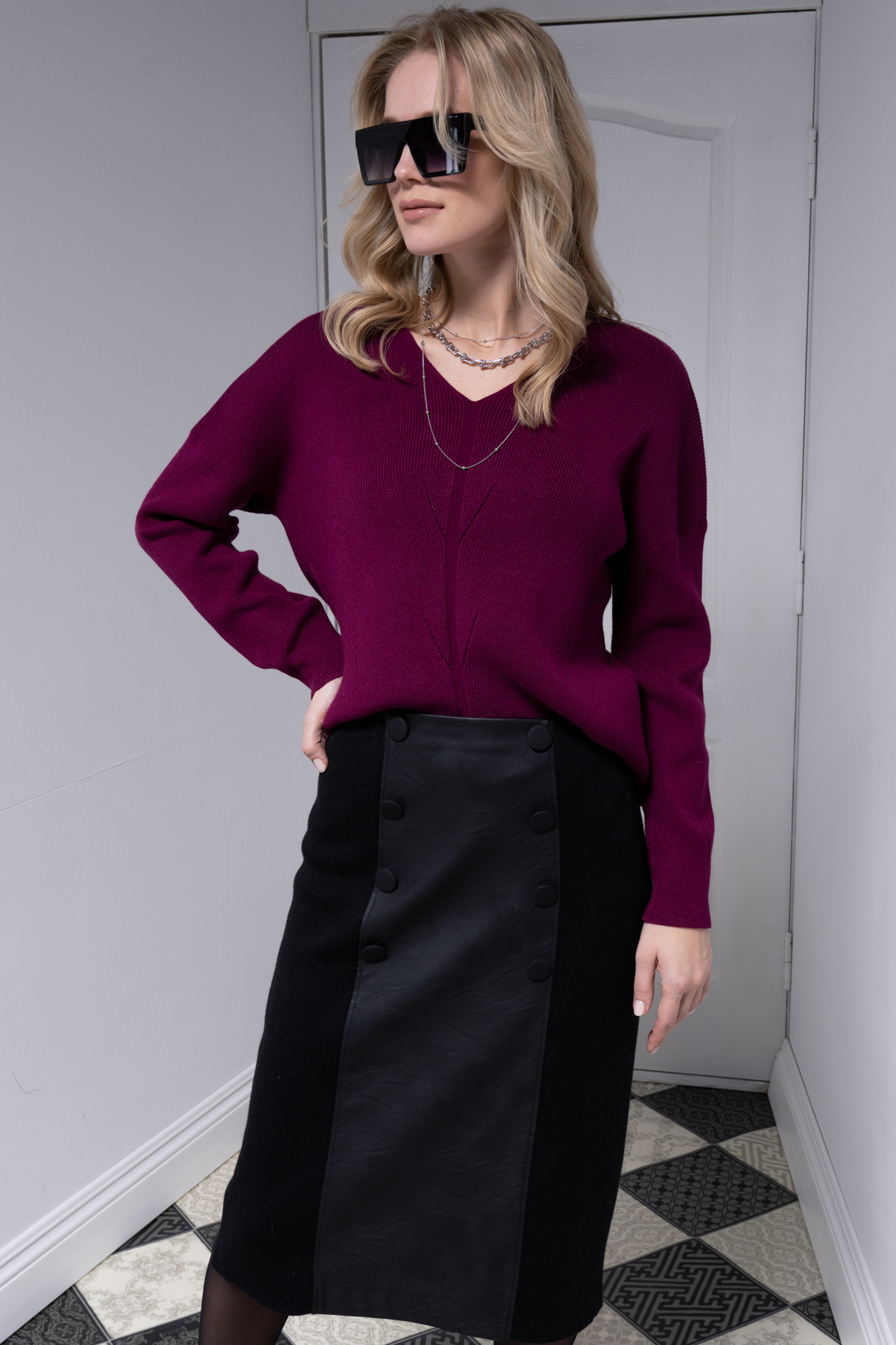 Трикотажная юбка женская, совставкой из эко-кожи, на подкладке.