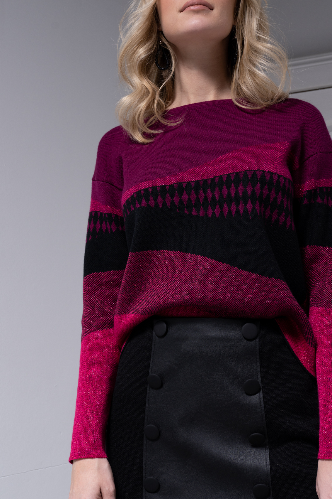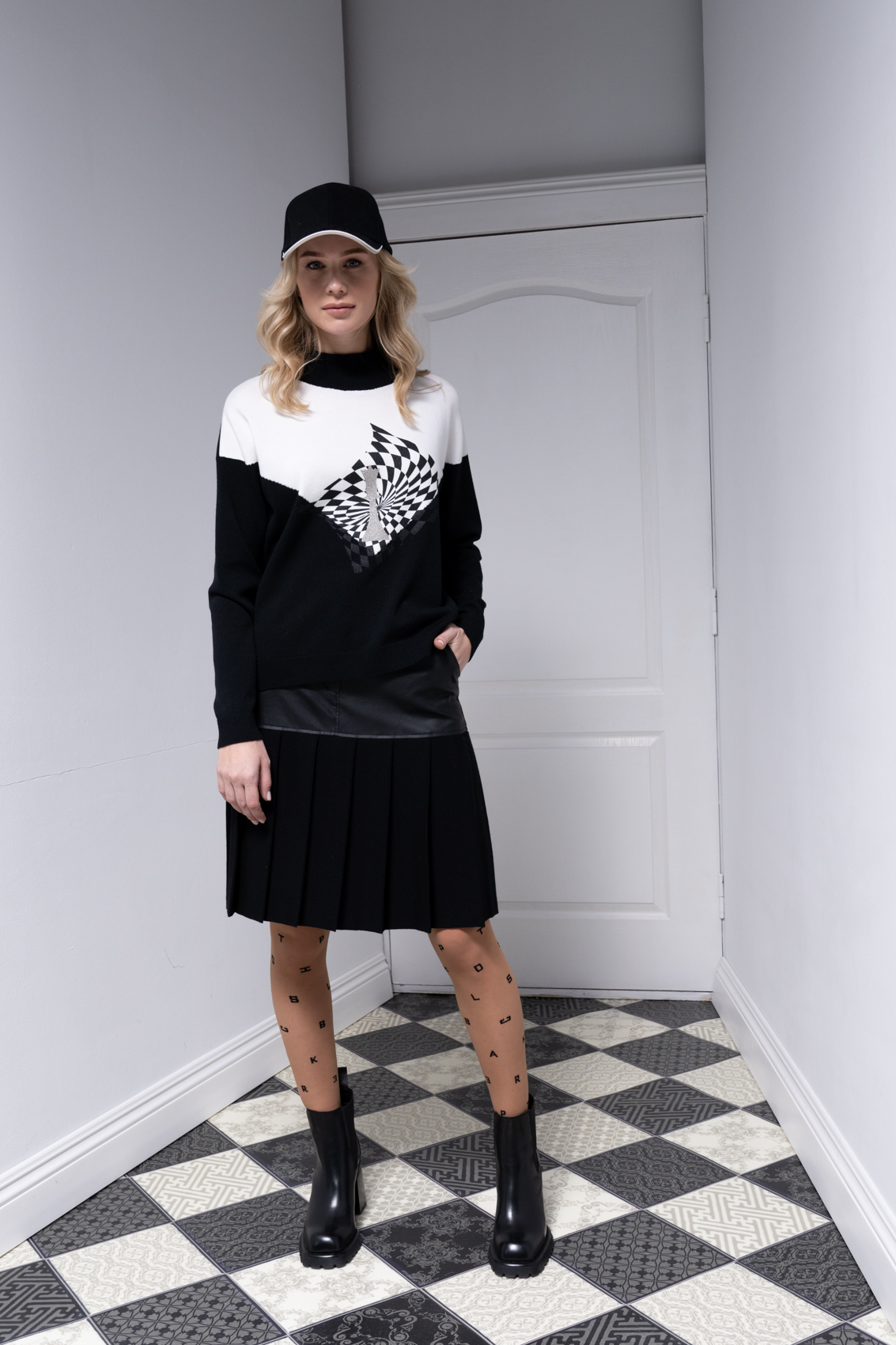 Джемпер женский свободного кроя со съемной брошью и контрастными манжетами