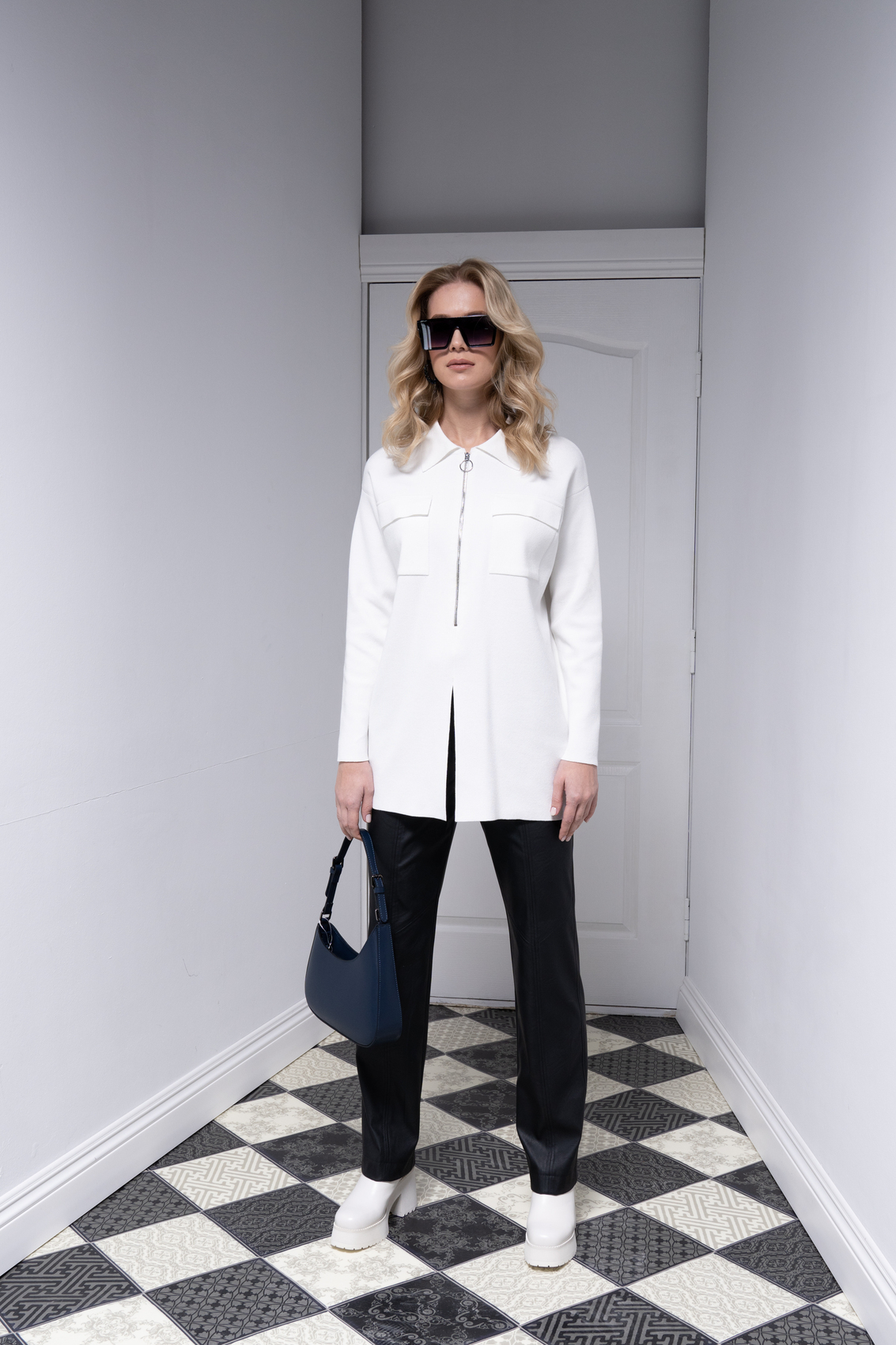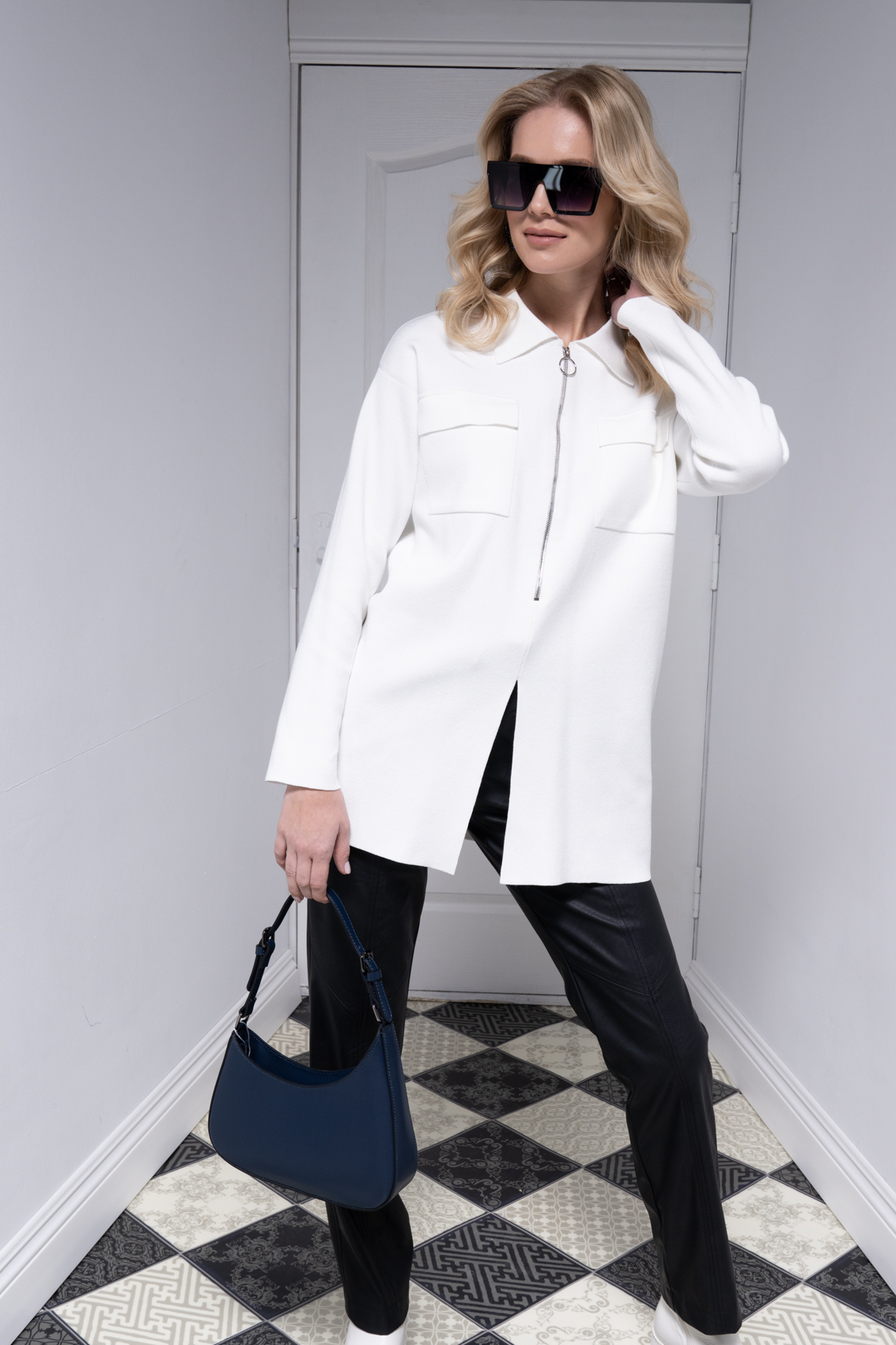 Кофта из мягкого трикотажа женская, удлиненная с разрезом и молнией