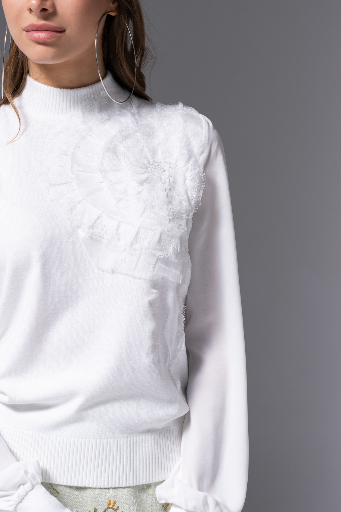 Джемпер женский с принтом и облегченным шифоновым рукавом
