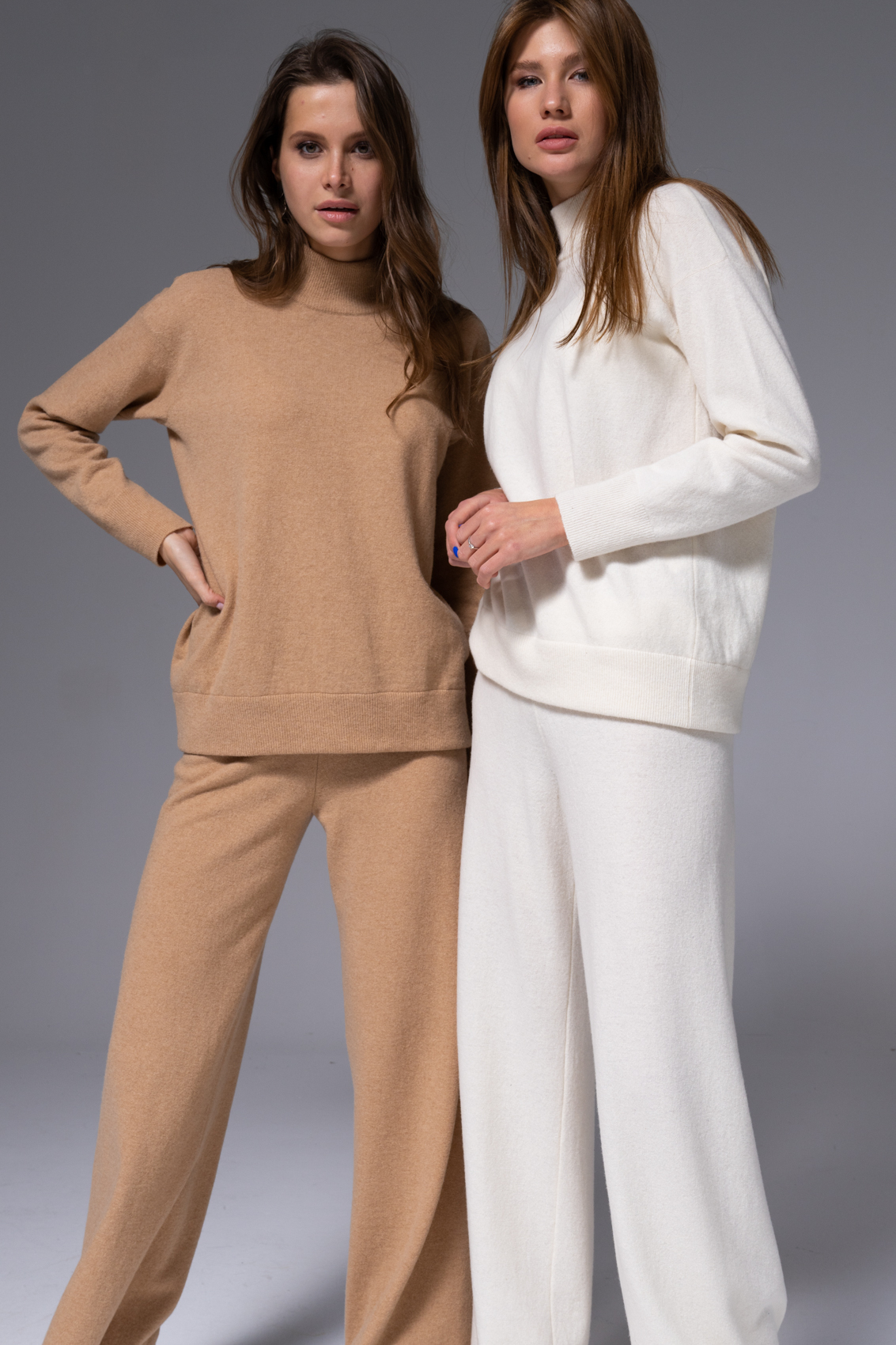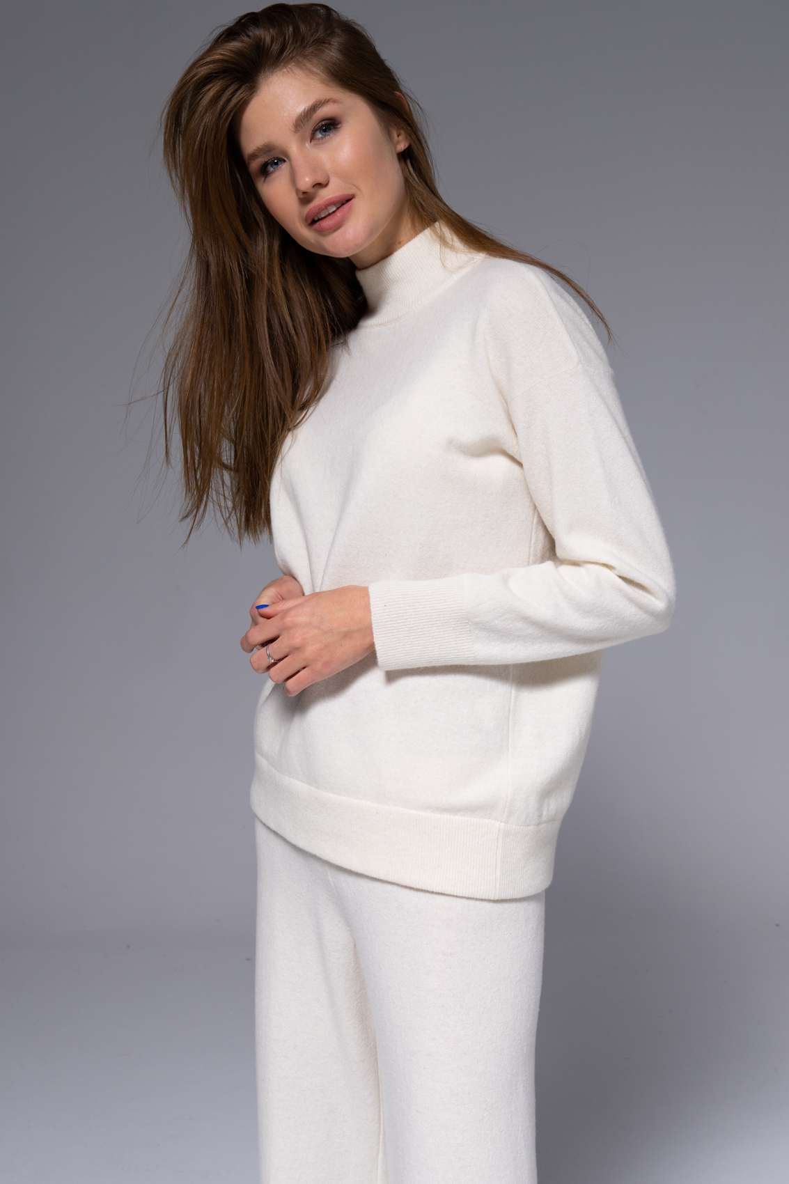 Свитер женский из шерсти мериноса свободного кроя под горло