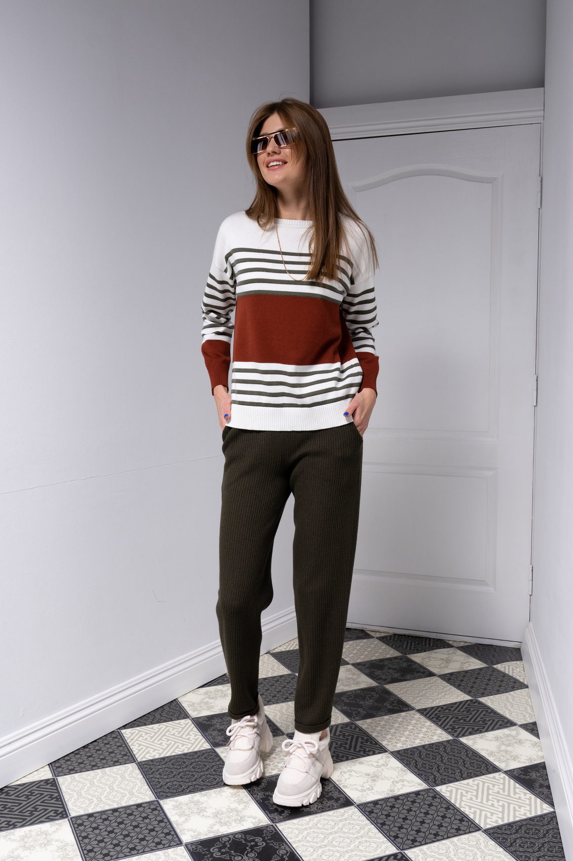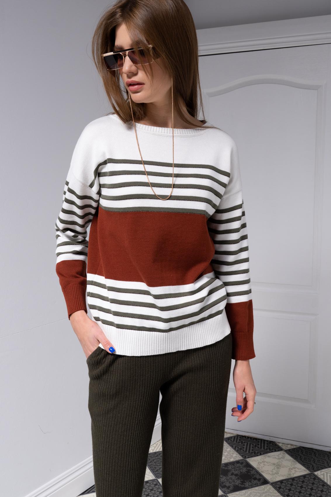 Джемпер женский в полоску. Пряжа - хлопок вискоза.